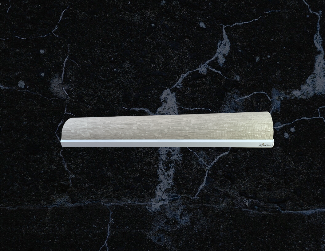 Cortina Roller BlackOut color Marrón Textura Claro, con tubo y mecanismos de 28mm, soportes metálicos, peso inferior de aluminio electropintado color blanco de 22mm.